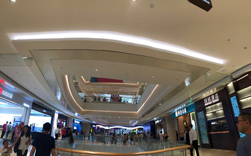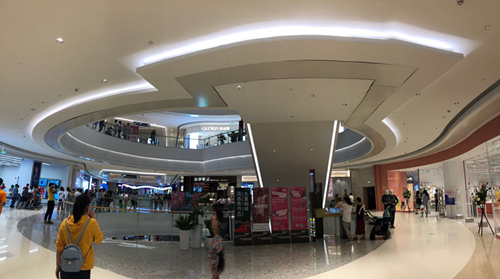 弧形折疊提升式防火卷簾,與玻璃擋煙捶壁。